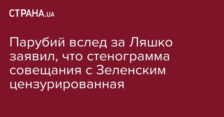 Спикер Верховной Рады Андрей Парубий заявил что Администрация президента обнародовала цензурированную стенограмму встречи президента Владимира Зеленского с председателями фракций. Об этом он сказал на заседании парламента 31 мая, пишет УП.