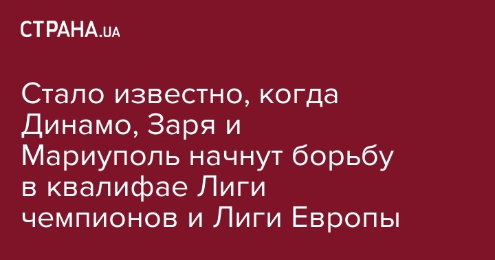 Стало известно, когда Динамо, Заря и Мариуполь начнут борьбу в квалифае Лиги чемпионов и Лиги Европы
