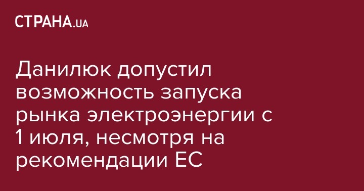 Данилюк допустил возможность запуска рынка электроэнергии с 1 июля, несмотря на рекомендации ЕС