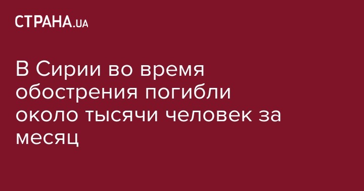 Из-за эскалации боевых действий в течение последнего месяца в сирийской провинции Идлиб погибли 948 человек, треть из которых - гражданские. Об этом сообщили в Сирийской обсерватории по мониторингу прав человека в пятницу, передает Радио Свобода.