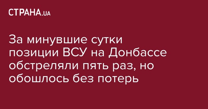 За минувшие сутки боевики пять раз обстреляли позиции Вооруженных сил Украины на Донбассе, украинские военнослужащие при этом не пострадали. Об этом сообщает пресс-центр Операции объединенных сил (ООС) в соцсети.