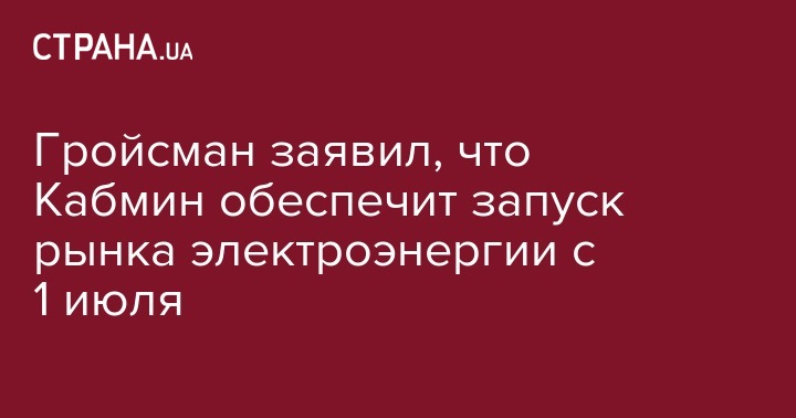 Премьер-министр Украина Владимир Гройсман заявляет, что Кабинет министров Украины на следующем заседании примет все необходимые решения для запуска рынка электроэнергии с 1 июля. Об этом он сообщил в эфире телеканала Интер в пятницу вечером.