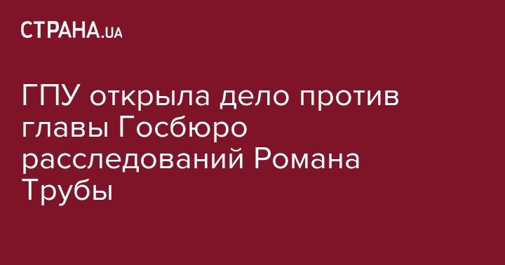 Генпрокуратура открыла уголовное дело против главы Госбюро расследований Романа Трубы по факту возможных нарушений при увольнении четверых руководителей подразделений ГБР. Об этом на своей странице в соцсети сообщил пресс-секретарь ГПУ Андрей Лысенко.