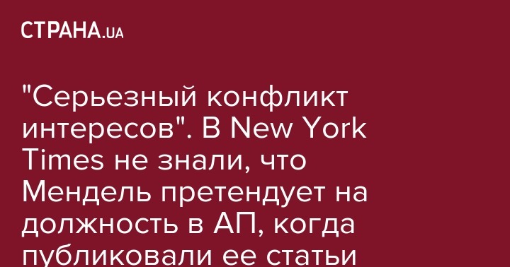 "Мисс Мендель написала одну статью для NYT в мае, когда она была кандидатом на правительственную должность, о роспуске парламента"... Если бы она сообщила редакторам о своем заявлении о приеме на работу, они бы не дали ей этого задания, и мы бы немедленно прекратили работать с ней, учитывая этот серьезный конфликт интересов", - сказала Ари Исаакман Беваскуа.