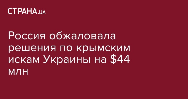 Россия обжаловала решения по крымским искам Украины на $44 млн