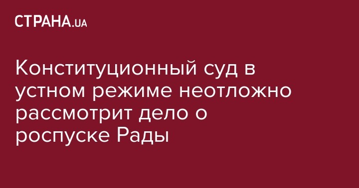 Конституционный Суд решил безотлагательно в устном режиме рассмотреть дело о конституционности указа президента Владимира Зеленского о роспуске Верховной Рады. Об этом сообщается на сайте суда.