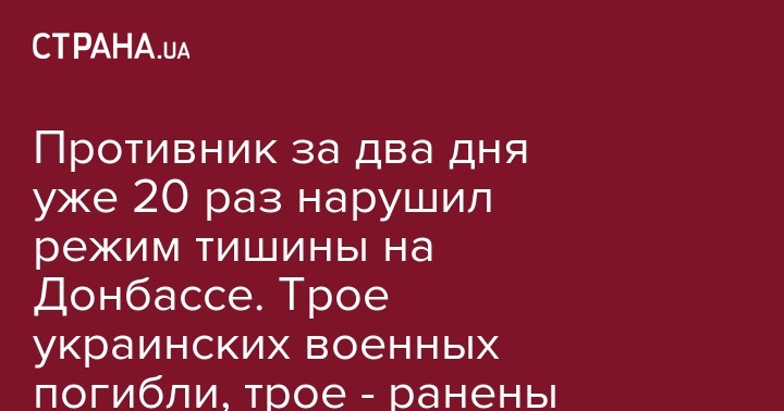 Противник за два дня уже 20 раз нарушил режим тишины на Донбассе. Трое украинских военных погибли, трое - ранены