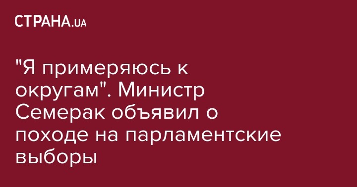 Министр экологии и природных ресурсов Остап Семерак заявил, что он собирается выдвигаться на внеочередных парламентских выборах по одному из мажоритарных округов. Об этом пишет "Интерфакс-Украина".