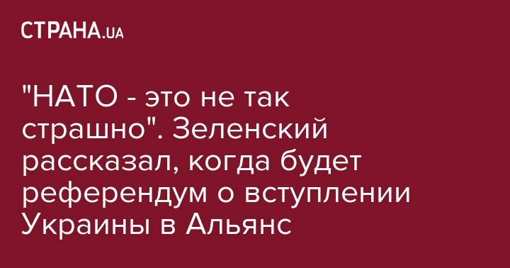 "Курс в НАТО – это безопасность страны и уровень нашей армии. Мы должны рассказать украинцам, что такое НАТО, и что это не так страшно. И когда украинцы будут все готовы, мы обязательно вынесем этот вопрос на референдум, и Украина будет в НАТО ", - сказал Владимир Зеленский.