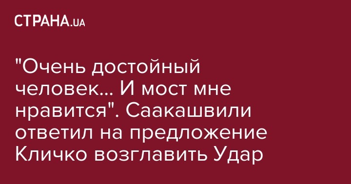 "Но если идти в "Удар", и партию надо менять кардинально. Во-первых, там есть люди, которые до последнего были с Порошенко... Если идти вместе, надо избавляться от всех людей, которые до последнего лояльно служили Порошенко. Во-вторых, там есть люди, которые связаны с коррупцией, и от них надо полностью отмежеваться и добиваться, чтобы они попали в тюрьму... На этих условиях, учитывая, что сам Виталий Кличко настроен открыто..., это выглядит как хороший вариант", - сказал Михаил Саакашвили.