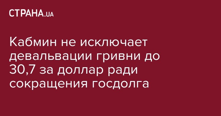 Кабмин не исключает девальвации гривни до 30,7 за доллар ради сокращения госдолга