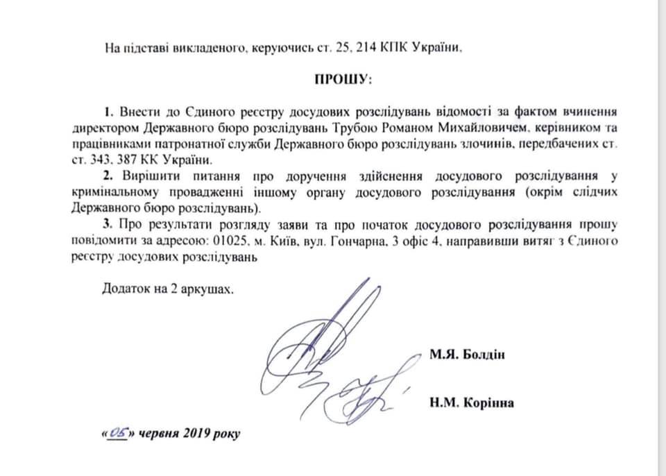 В Совете общественного контроля при Государственном бюро расследований подали в Генпрокуратуру Украины новое заявление об уголовных преступлениях главы ведомства Романа Трубы, руководителя его патронатной службы Александра Удовиченко и прочих сотрудников.