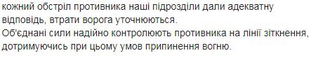 Отмечается, что ситуация на Донбассе обострилась. Противник нарушил Минские договоренности и атаковал ВСУ с применением артиллерии. "В районе ответственности оперативно-тактической группировки "Север" противник, дерзко нарушив условия Минских договоренностей, атаковал подразделения ООС в районе населенного пункта Новолуганское с применением артиллерии. Вследствие вражеских обстрелов погибли двое военнослужащих Объединенных сил. Восемь - получили ранения различной степени тяжести" – говорится в сообщении штаба ООС.