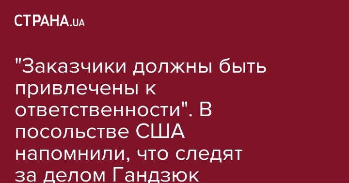 В посольстве США в Украине заявили, что заказчики убийства активистки Екатерины Гандзюк должны быть привлечены к ответственности. Об этом сказано в заявлении посольства в Twitter.