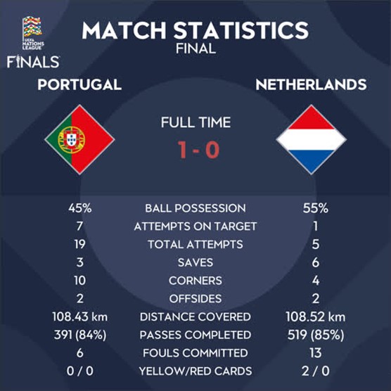 В воскресенье, 9 июня, в португальском Порту за кубок Лиги наций УЕФА состоялся первый в истории финал "Лиги наций УЕФА". Игроки сборной Португалии победили футболистов команды Нидерландов в родном Порту. Единственный и победный гол в на 60-й минуте встречи забил Гонсалу Гедеш