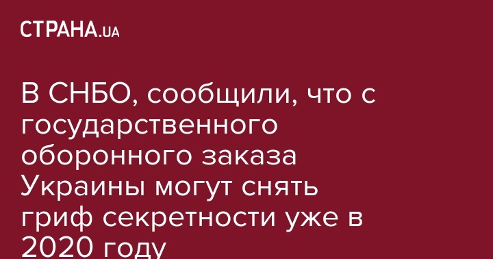 Заместитель секретаря СНБО Сергей Кривонос заявляет о возможности снятия грифа "секретно" с государственного оборонного заказа Украины уже в 2020 году. Об этом сообщает "Интерфакс-Украина".
