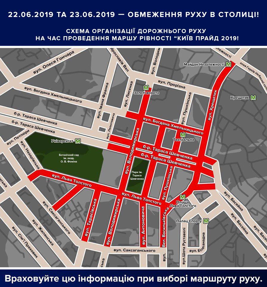 Кроме того, 22 и 23 июня в Киеве будет частично ограничено дорожное движение в связи с проведением массового мероприятия. Движение будет ограничено 22 июня с 18:00 до 18:00 23 июня на некоторых улицах столицы.
