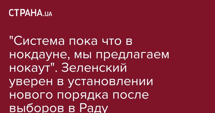 "Слуга народа" - это не бренд, это - наше мировоззрение, это то, что поможет Украине установить другую систему. Не перезагрузить старую, а установить новую систему. И мы начали это делать 21 апреля вместе с вами, но мы сделали только первый небольшой шаг: это только первый раунд. Система пока что в нокдауне, мы предлагаем нокаут", - сказал президент.