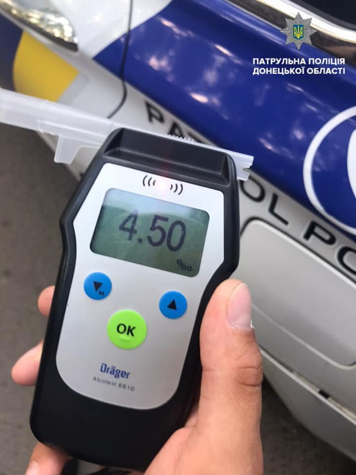 "Во время общения с водителем инспекторы обнаружили признаки алкогольного опьянения. Результат газоанализатора поразил даже опытных патрульных - 4,5 промилле. На 38-летнего водителя составили протокол по ч.1 ст.130 КУоАП", - говорится в сообщении.
