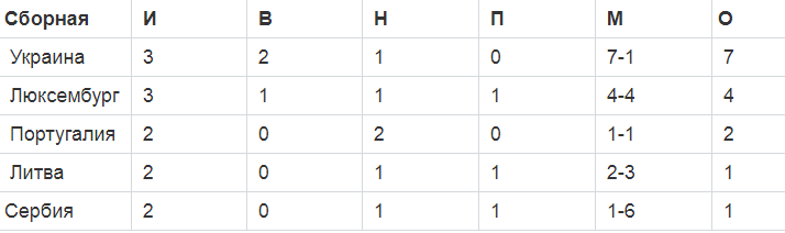 7 июня сборная Украины разгромила команду Сербии в отборе к Евро-2020. После этой победы Украина возглавила свою группу с 7 очками, добытыми в трех матчах. У Люксембурга – 4 очка после трех туров. У Португалии 2 очка - после двух игр. Литва и Сербия набрали в двух играх по 1 очку.