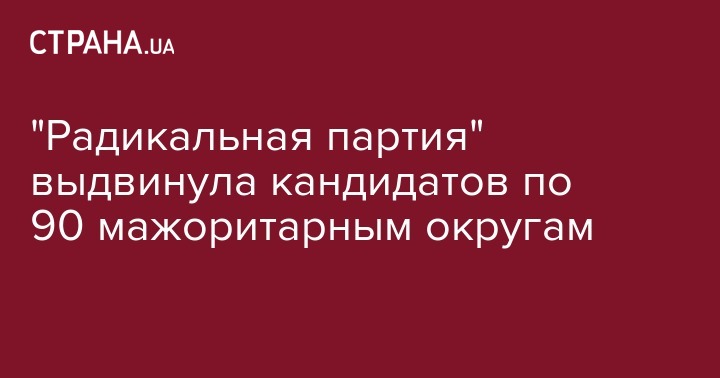 Радикальная партия Олега Ляшко выдвинула кандидатов в народные депутаты Украины на внеочередных выборах в Верховную Раду по 90 одномандатным округам. Об этом сообщает "Интерфакс-Украина".