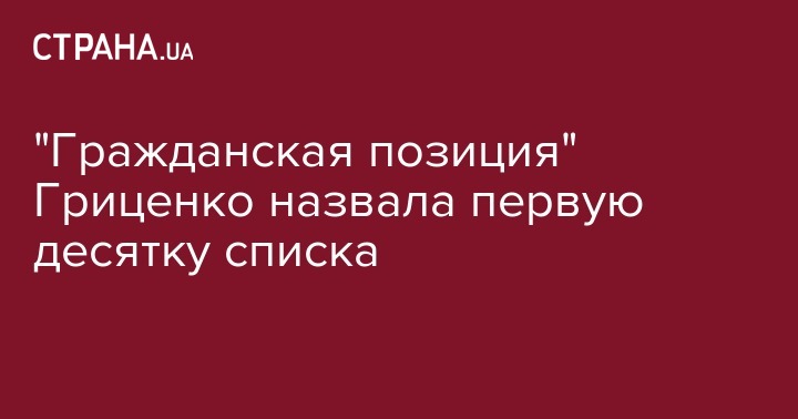 "Гражданская позиция" Гриценко назвала первую десятку списка