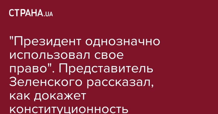 "Президент абсолютно однозначно использовал свое право, на основании абсолютно четких, понятных, прогнозируемых правовых оснований, и досрочно прекратил полномочия Верховной Рады. По нашему убеждению, у Конституционного суда нет и быть не может никаких правовых оснований ставить под сомнение конституционность указа президента", - сказал представитель президента Украины Владимира Зеленского в Конституционном суде Украины Федор Вениславский.