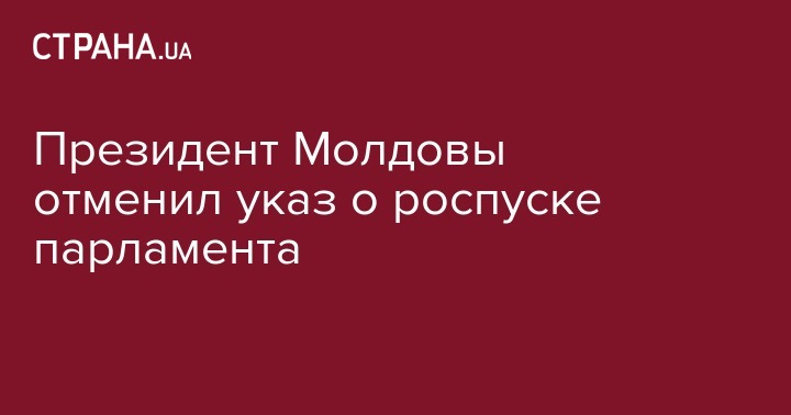 Сегодня, 11 июня, президент Молдовы Игорь Додон сообщил, что отменил подписанный в воскресенье премьер-министром в качестве исполняющего обязанности президента указ о роспуске парламента. Об этом сообщает "Интерфакс".