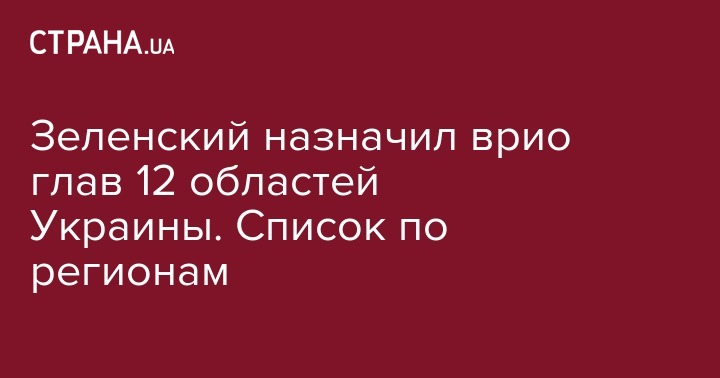 Президент Украины Владимир Зеленский назначил временно исполняющих обязанности глав областных государственных администраций (ОГА) в 12 областях.