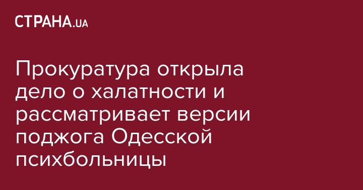 Прокуратура Одесской области открыла уголовное производство по факту служебной халатности, приведшей к тяжелым последствиям в результате пожара в областном медицинском центре психического здоровья, когда погибли шесть человек. Об этом говорится в сообщении пресс-службы областной прокуратуры.