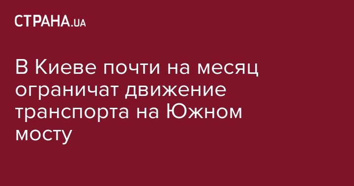 Из-за ремонтных работ с 14:00 13 июня в Киеве будет частично ограничено движение транспорта на Южном мостовом переходе. Об этом сообщает пресс-служба КК "Киевавтодор".