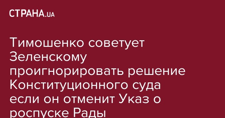 Тимошенко советует Зеленскому проигнорировать решение Конституционного суда если он отменит Указ о роспуске Рады