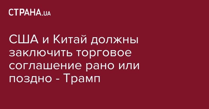 США и Китай должны заключить торговое соглашение рано или поздно - Трамп