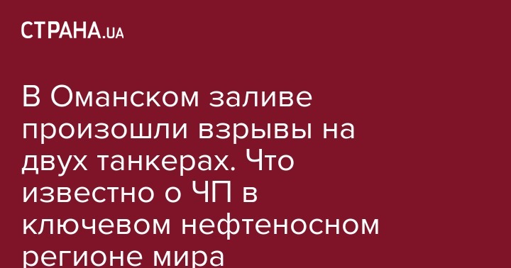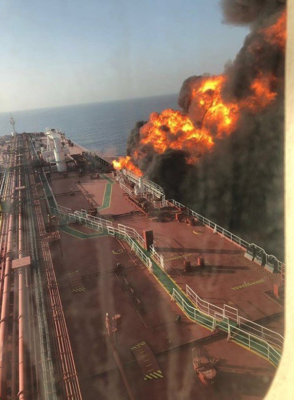 В четверг, 13 июня 2019 в Оманской заливе юго-восточнее Аравийского полуострова на двух нефтяных танкерах произошли взрывы. На судах вспыхнул сильный пожар. Моряки были спасены спасателями из Ирана. В Военно-морских силах США также заявили, что оказали помощь пострадавшим.