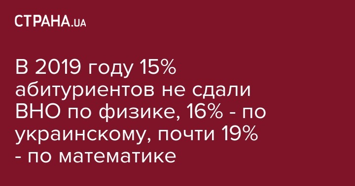 В 2019 году 15% абитуриентов не сдали ВНО по физике, 16% - по украинскому, почти 19% - по математике