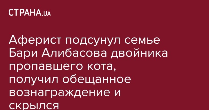 Накануне стало известно, что любимый кот Алибасова породы канадский сфинкс сбежал из квартиры во время проведения пресс-конференции, очевидно испугавшись нашествия на его территорию незнакомых людей. Сын продюссера Бари Алибасов-младший объявил вознаграждение в 800 тысяч тому, кто найдет и вернет домашнего любимца его отца. Этим и воспользовался аферист, который принес другого кота той же самой породы.