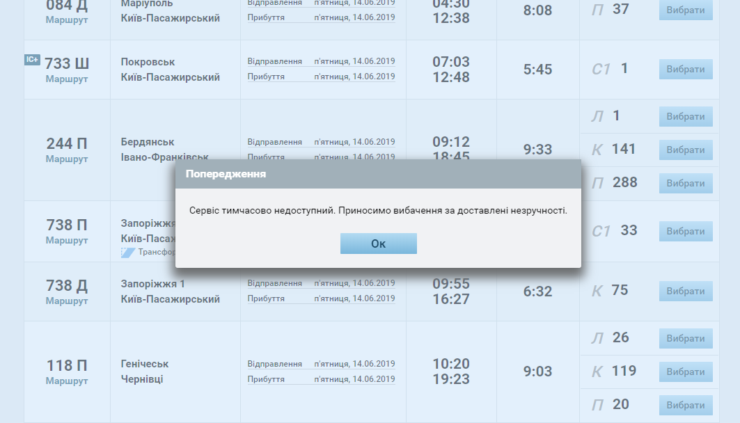 Накануне праздничных выходных онлайн-система продажи билетов "Укрзализныци" дала сбой