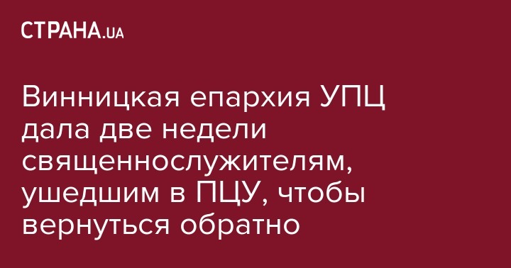 Винницкая епархия УПЦ дала две недели священнослужителям, ушедшим в ПЦУ, чтобы вернуться обратно