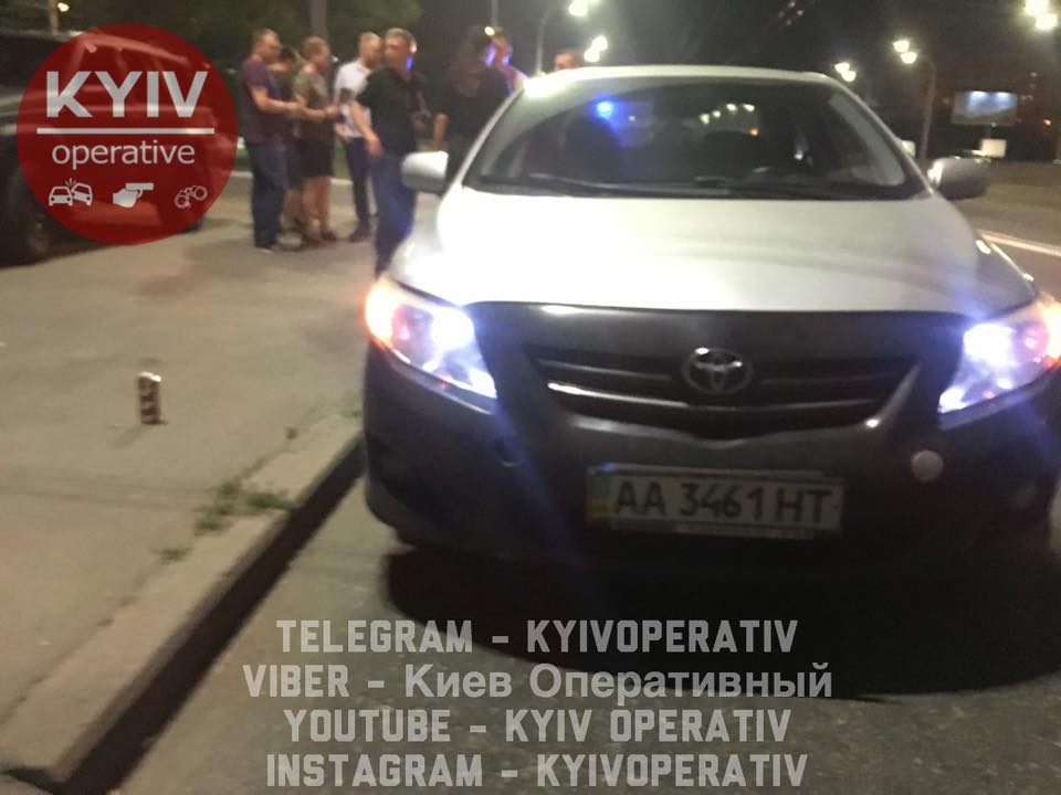 В Киеве на проспекте Шухевича патрульные полицейские остановили автомобиль Toyota с подозрительными людьми в салоне.
