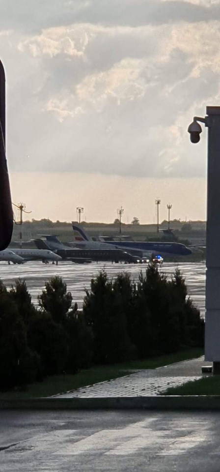 На фото Аэропорт Кишинёва, Илан Шор покидает страну в чёрном Суперджете. На взлётке его кортеж".