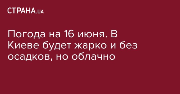 В воскресенье, 16 июня, в Киеве будет по-прежнему жаркая погода. Но днем на небе появятся облака.