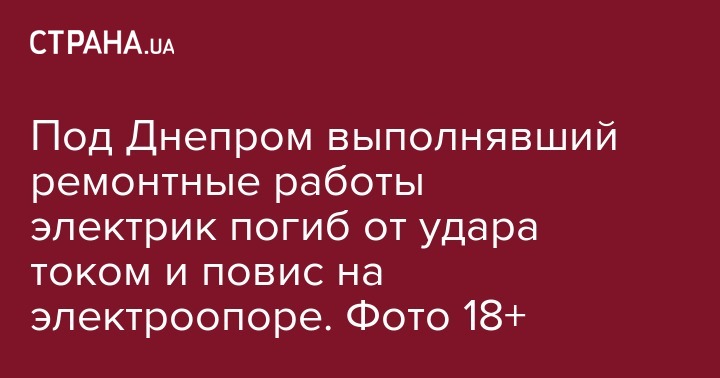 В дачном кооперативе под Днепром электрик погиб от удара током и повис на электроопоре. Его тело обнаружили в воскресенье, 16 июня, около 14:30. К месту оперативно прибыли правоохранители. Об этом сообщает "Информатор".