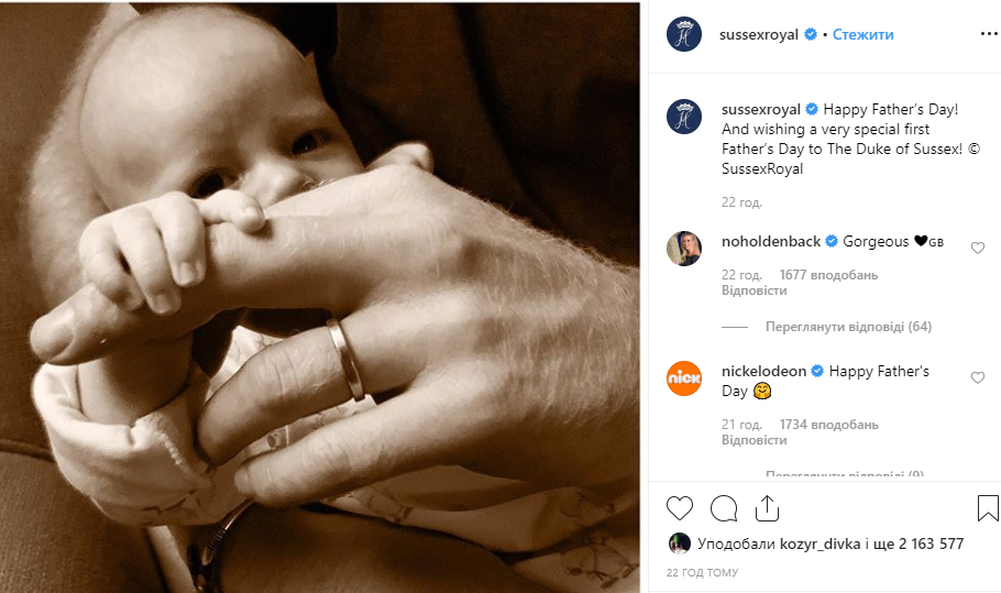 "С Днем отца! И желаем особого первого Дня отца герцогу Сассекскому!" - говорится в подписи к фото.