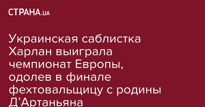 Для Ольги Харлан это уже восьмой титул чемпионки Европы, шесть из которых - индивидуальные. Континентальное первенство по фехтованию, на котором разыграют 12 комплектов наград - по шесть среди мужчин и женщин (личных и командных), пройдет до 22 июня.