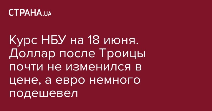 Курс НБУ на 18 июня. Доллар после Троицы почти не изменился в цене, а евро немного подешевел