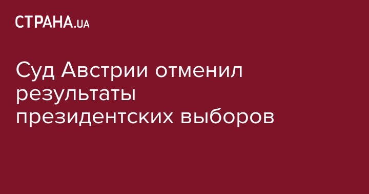 Австрийский высший суд аннулировал результаты голосования на выборах президента, которые прошли в мае этого года, сообщает ВВС