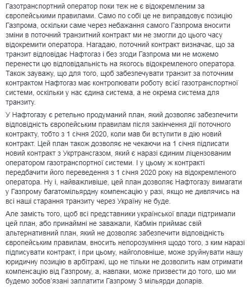 По словам Витренко, договоренность о "свопе" соответствует европейским требованиям и практикам. В то же время вопрос не требует проведения анбандлинга Нафтогаза (то есть разделения компании по сферам добычи и транспортировки газа, т.е. выделения из-под ее подчинения ГТС). Именно непроведение анбандлинга в российском "Газпроме" считают главной причиной того, почему "не могут заключить новое соглашение о транзите на европейских условиях".