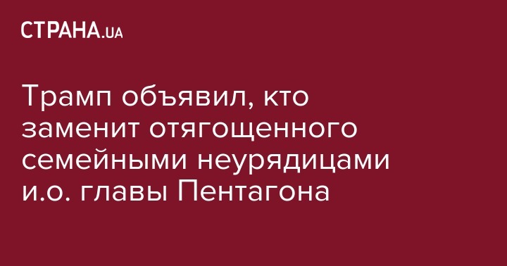 Трамп объявил, кто заменит отягощенного семейными неурядицами и.о. главы Пентагона