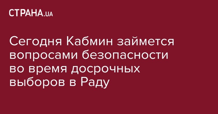 Сегодня, 19 июня, Кабинет министров рассмотрит вопросы организации безопасности во время внеочередных выборов 21 июля. Об этом говорится в повестке дня сегодняшнего заседания правительства, передает УНН.