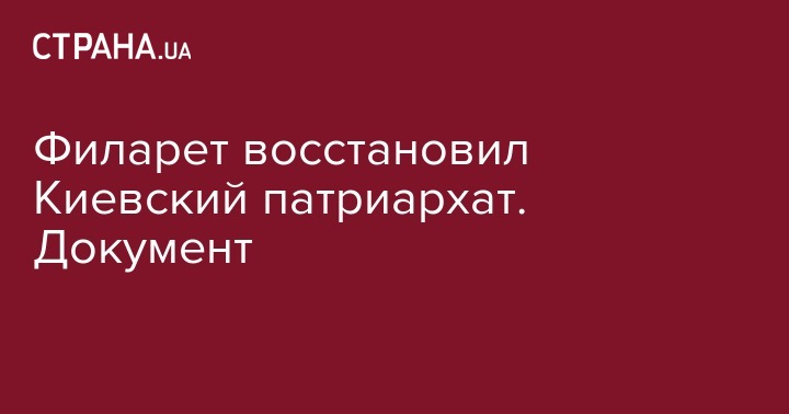 Ранее "Страна" подробно анализировала, сможет ли Филарет восстановить Киевский патриархат.
